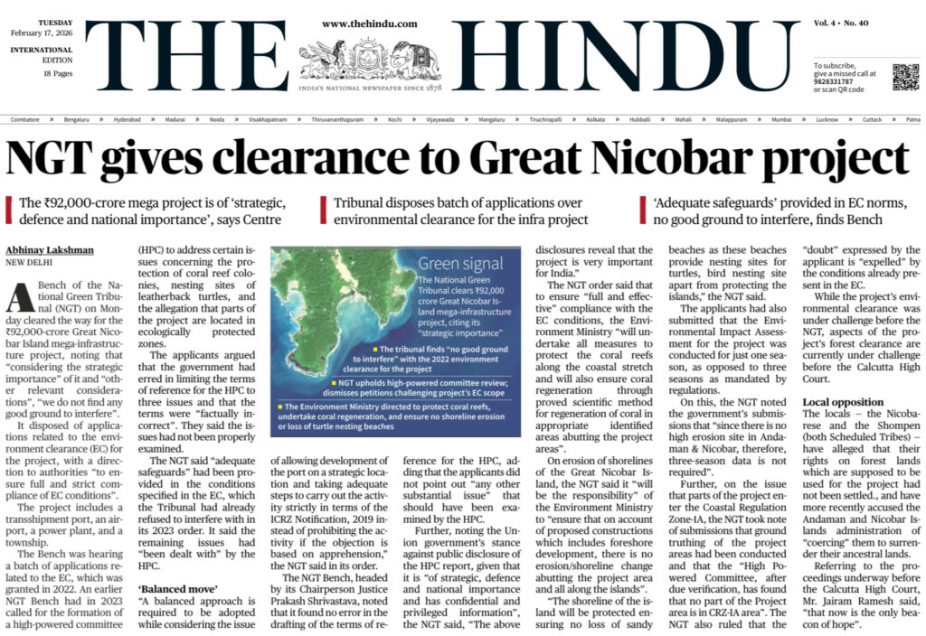 भारत सरकारच्या निती-आयोगाने जाणिवपूर्वक सदोष ‘पर्यावरणीय आघात-मोजमाप’ करुन (EIA) व ‘NGT’पुढे जाताना ‘Terms of Reference’ मध्येच बदमाषीने बदल केला व तो ‘कॉम्प्रमाईज्ड-NGT’ने मान्य केलेला दिसतोय! ————————————- अंदमान निकोबार बेटांच्या विकासासाठीचा ९२ हजार कोटींचा (पूर्वी जाहीर केलेला प्रकल्पखर्च ७५ हजार कोटी…म्हणजे, भ्रष्टाचार व दलालीच्या माध्यमातून ‘मारुतिच्या शेपटा’सारखा खर्च वाढतोच आहे) प्रकल्प-आराखडा NGTने मंजूर केलेला दिसतोय. या […]